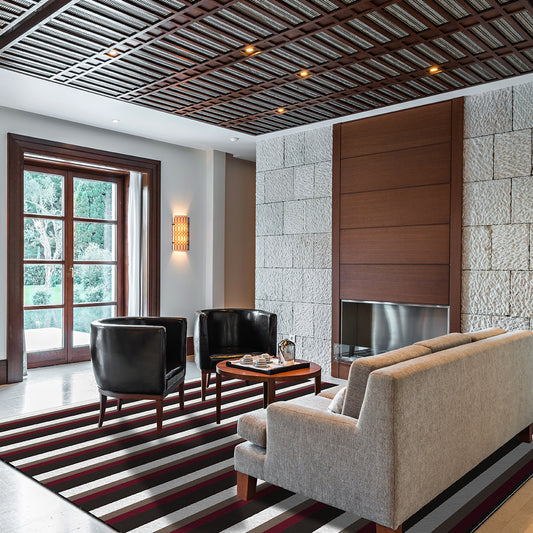 Os tapetes da linha Nylon com design próprio são feitos à mão e sob medida, para melhor adequação do seu ambiente.