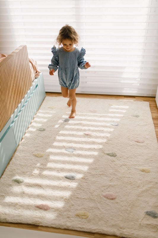 A Tapis possui uma linha infantil de algodão com design próprio feito à mão e sob medida, para melhor adequação do seu ambiente!